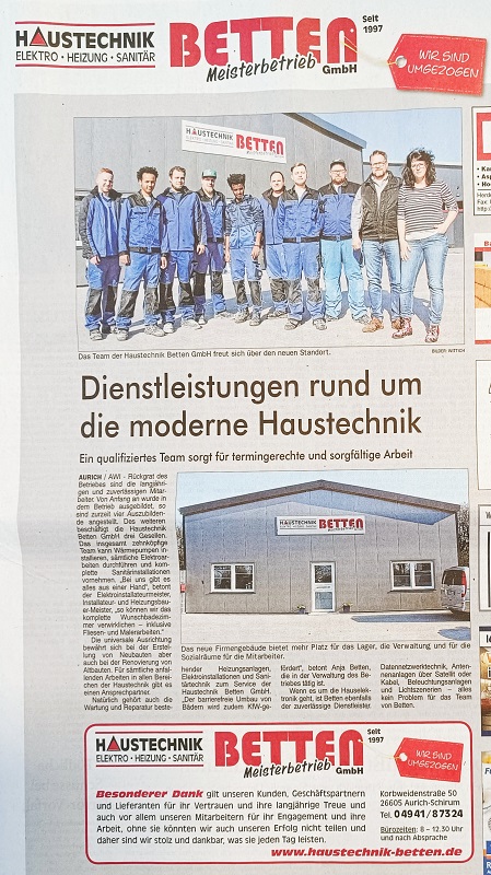 Im Juni 2012 entwickelte sich aus dem Betrieb Elektro Betten die Haustechnik Betten GmbH. Inhaber und Geschäftsführer ist Thomas Betten.